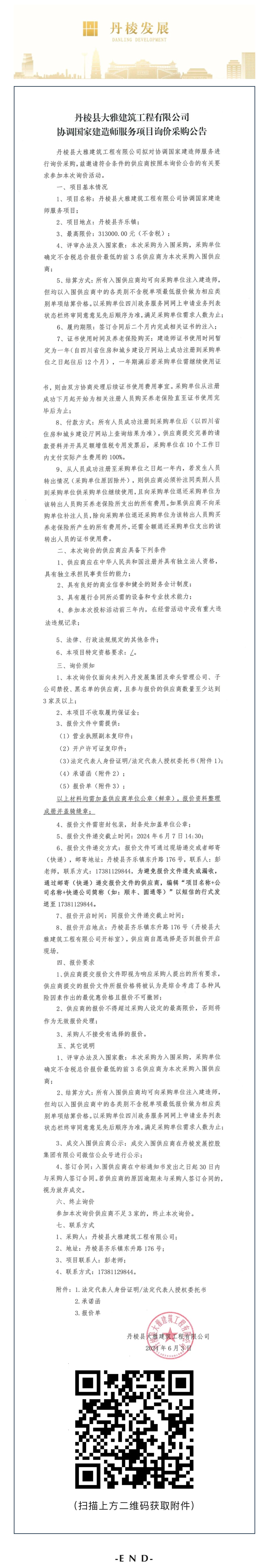 丹棱縣大雅建筑工程有限公司協(xié)調(diào)國家建造師服務(wù)項目詢價采購公告