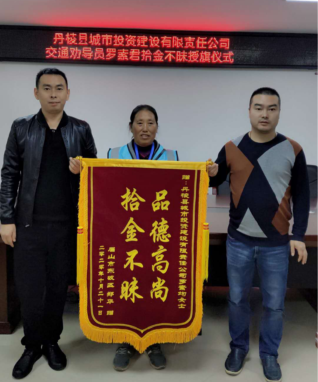 10月20日傍晚,丹棱縣城市投資建設(shè)有限責任公司交通勸導(dǎo)員羅素君在南岸A區(qū)路邊停車位值守時,撿拾到一個錢包,內(nèi)有約1000元現(xiàn)金、身份證、銀行卡、發(fā)票資料、保險柜鑰匙、汽車鑰匙等重要物品。羅素君立即把此事上報公司并通過失主發(fā)票上的電話號碼聯(lián)系失主親手交還。