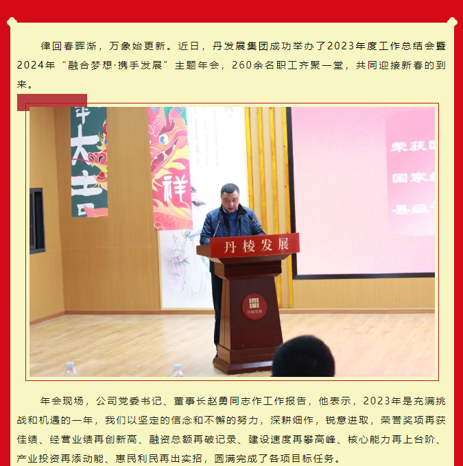 融合夢(mèng)想·攜手發(fā)展︱丹發(fā)展集團(tuán)舉辦2023年度工作總結(jié)會(huì)暨2024主題年會(huì)