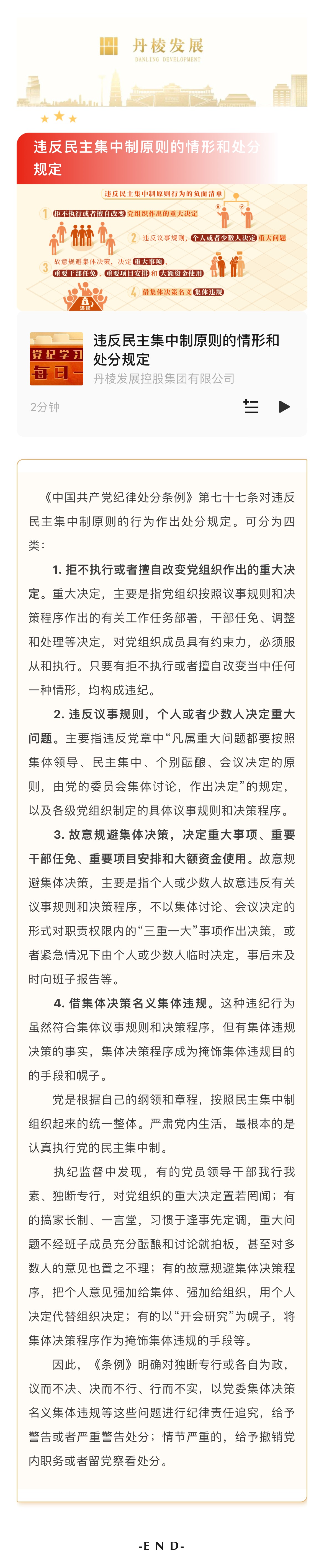 【黨紀學習教育】每日一課丨違反民主集中制原則的情形和處分規(guī)定